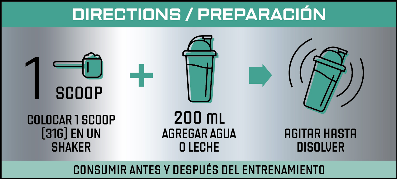 • Blend de proteína de suero ultra concentrada, aislada e hidrolizada: aporta proteínas de alta calidad para acompañar el rendimiento y la recuperación muscular